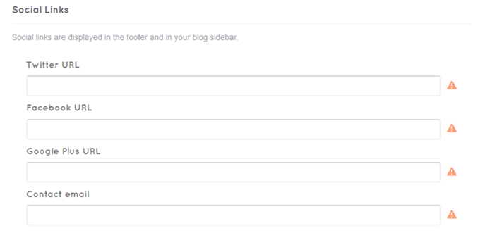 Add your Twitter, Facebook, Google Plus, and contact email links to enhance your social media presence. These links will appear in the footer for customers to access.