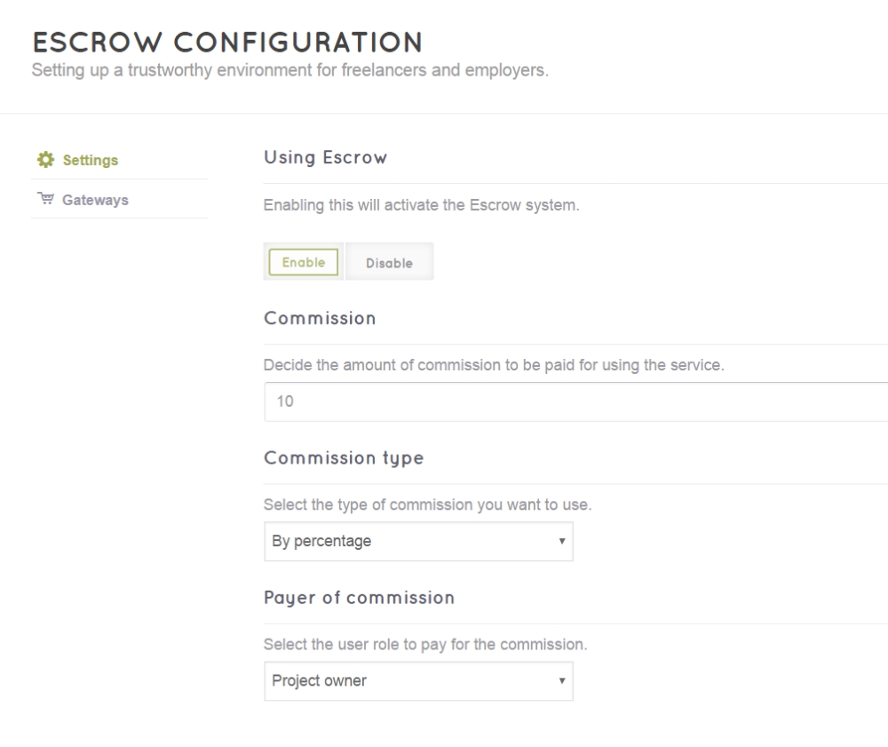 You can find the Escrow system’s setting page in your admin panel. Choose Engine settings > Escrow to set up Credit.