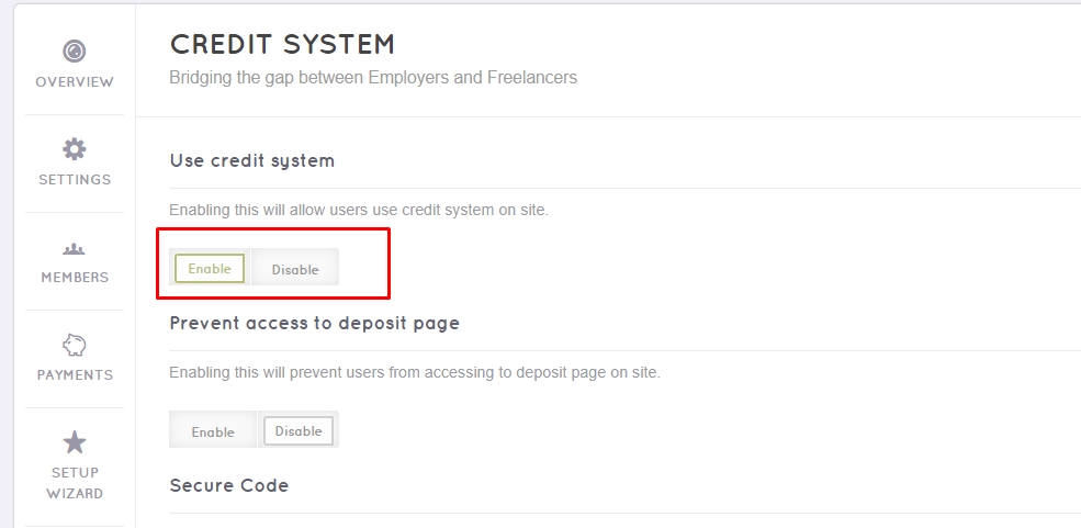 Note: When you select credit system to work with Escrow system on your project bidding website, PayPal Adaptive and Stripe Connect must be disabled.