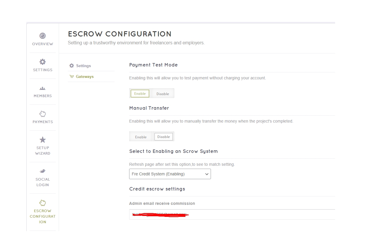 To use Credit as a payment gateway working with Escrow system, you have to select FrE Credit System.