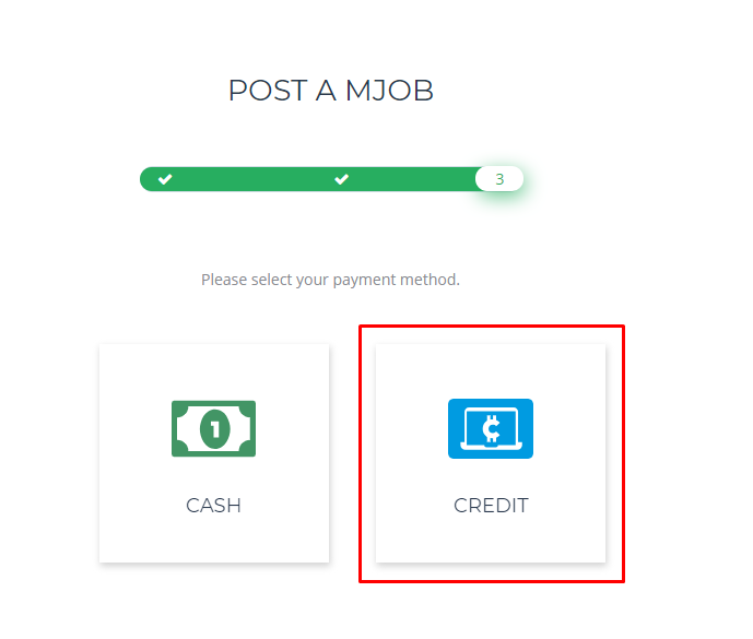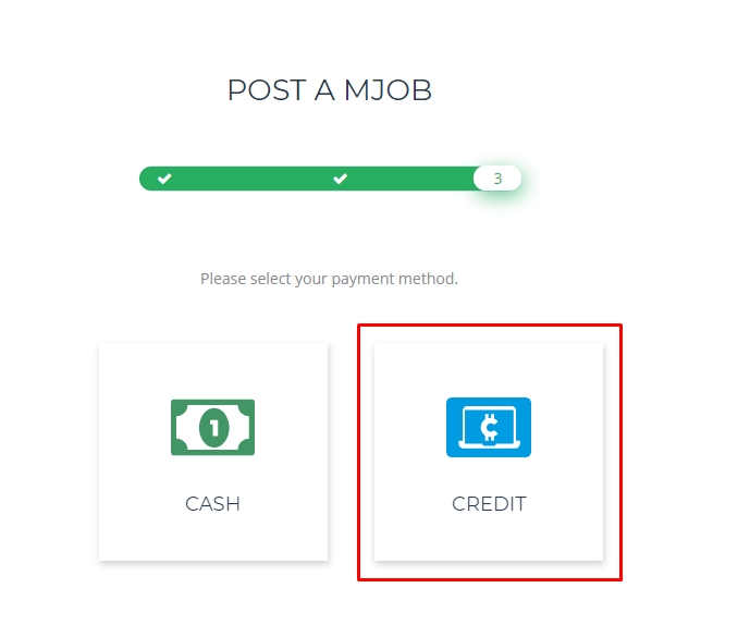 Order a mJob: Process to Checkout and then choose Credit to pay.