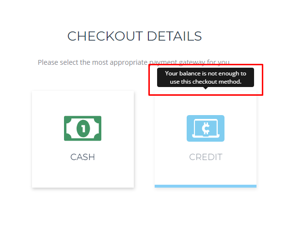 Note: If your available credits are not enough to pay, you’ll see this notification: