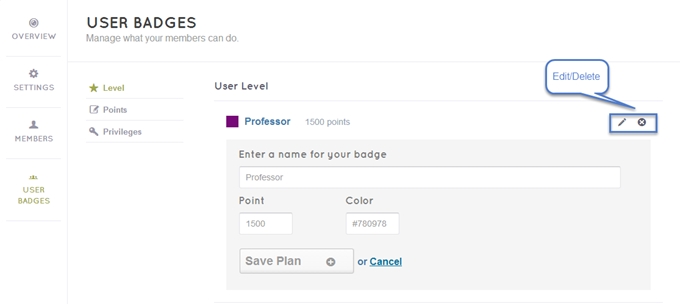 - Click the edit symbol on the right of the badges. - After editing the information, click “Save plan” button to complete your settings. - You can also click “Cancel” button if you don’t want to edit the badge anymore.