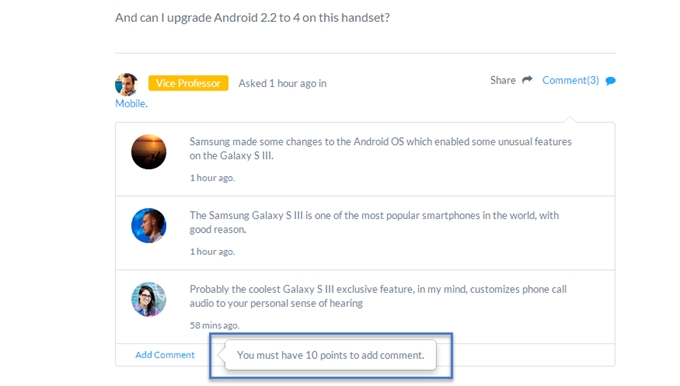 If users don’t have more than 10 points, they can’t leave a comment: